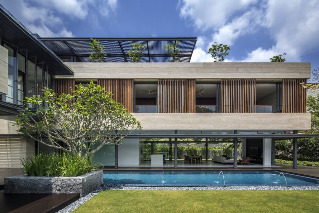 Villa hiện đại kết hợp các chi tiết trang trí lam hỗ và ốp giả...